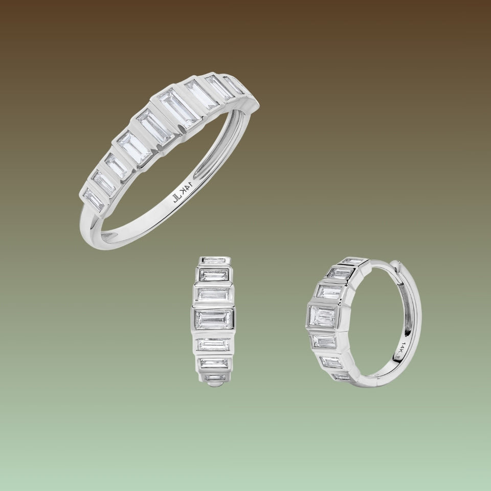 14K White Gold Bezel Set Baguette HoopsLK10E004 W